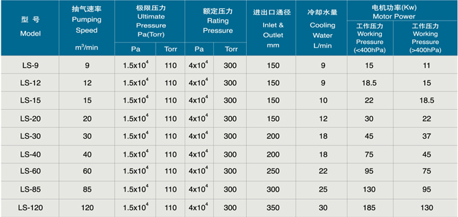 LS型水冷式羅茨真空泵系列